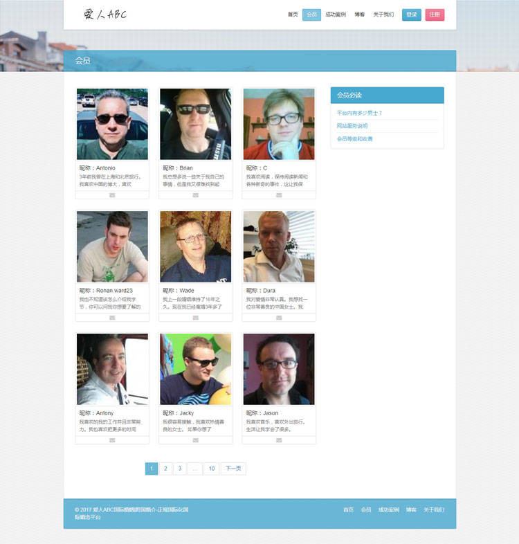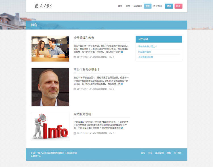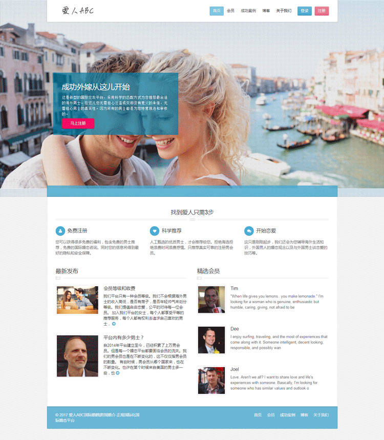 服务内容 中英文双语(分两个网站) 站内信功能 此主题的布局和配色是仿 http://demo.themex.co/lovestory/ 这个主题,应客户要求在原站样式上做了些许修改,另外在功能上增加了更加复杂的站内信功能。 成品展示