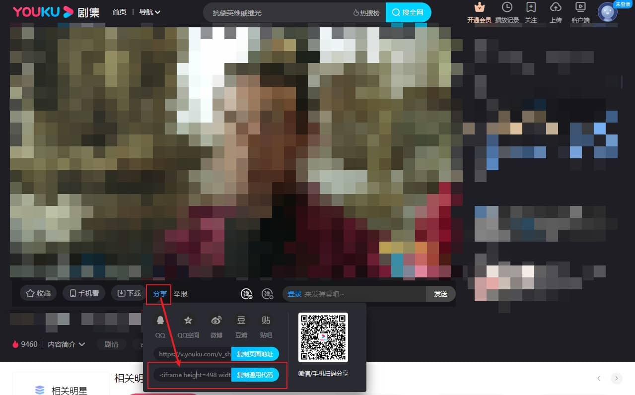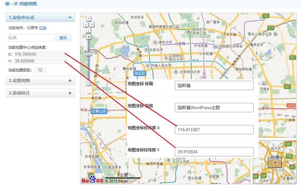 弹窗视频的视频链接怎么添加 我们以优酷的视频为例,看图: 打开一个优酷视频,下面有【分享】,在其中选择【复制通用代码】。得到以下数据: 其中,https://player.youku.com/embed/XNTA0ODc2ODI2NA==就是我们要的结果,填写到主题设置里即可。 怎么设置地图 这个需要借助百度地图的API。打开网址 http://api.map.baidu.com/lbsapi/creatmap/: 定位好了地点,把地图坐标经纬度 X、Y 填写到主题设置即可。