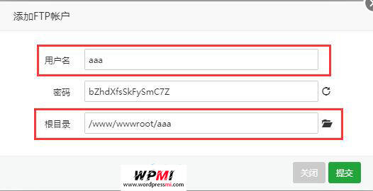 需要注意的是“根目录”,你输入用户名的时候,会自动改变。比如:输入用户名aaa: