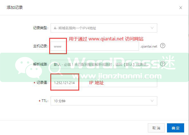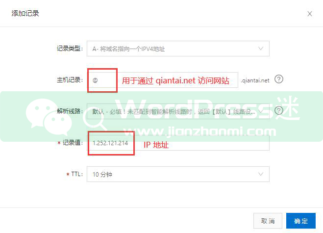 wordpress迷(微信公众号:wordpressmi)在此处演示以阿里云域名解析作为例子,其他域名服务商的解析过程也大同小异,大家举一反三。