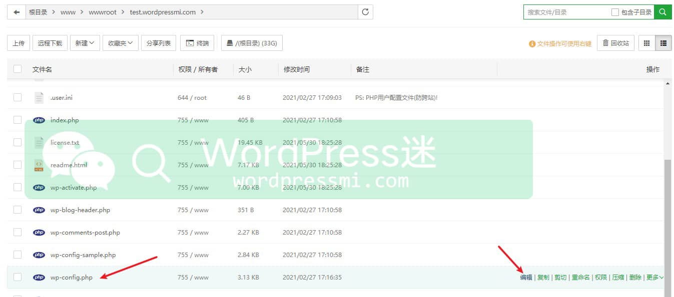 假设需要修改的网站域名为 test.wordpressmi.com。