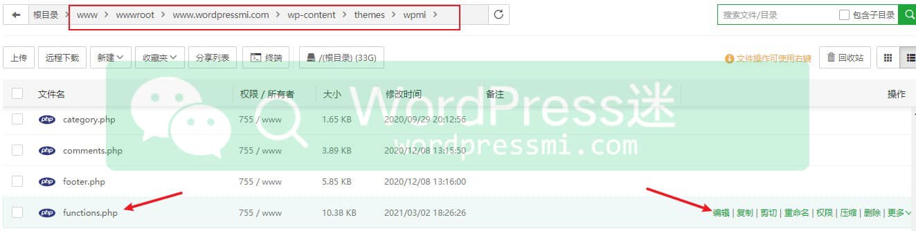 打开网站主题根目录(注意:是主题根目录,不是网站根目录)的 functions.php 文件: